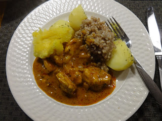 *Brainy frugal tip - the previous dish was chicken soup using chicken breasts. If you did not put the pasta into the soup and you have the left over stock with breast meat, it can be used for this dish. You can strain off the meat from the stock and use instead of using raw meat. Remember, left overs are only as good as they are still good - fresh in the meaning of not more than a couple of days old.